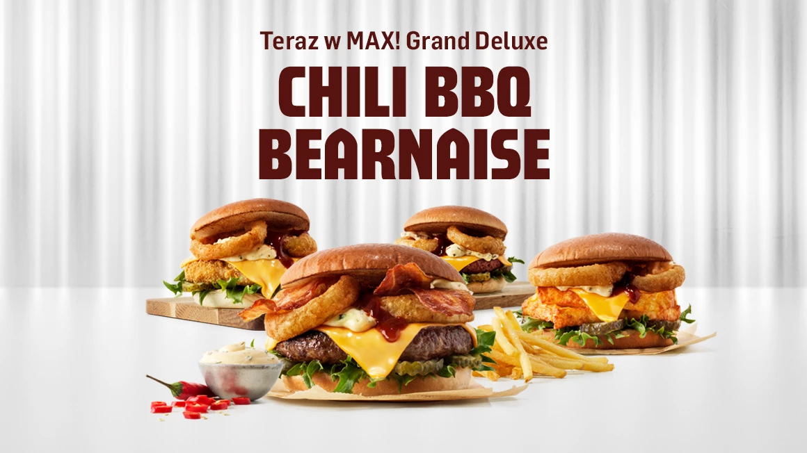 MAX to sieć restauracji, którą pokochali Szwedzi. Skandynawski love brand prężnie rozwija się w Polsce, oferując swoim gościom nowości w menu. Niedawno premierę miał chrupiący Grand Chicken, a już teraz w menu pojawia się Chili BBQ Bearnaise. Pikantna nowość z sosem BBQ i sosem berneńskim z chili to inspiracja wprost ze Szwecji. Nowe propozycje są dostępne w restauracjach MAX Premium Burgers od 20 października 2022.